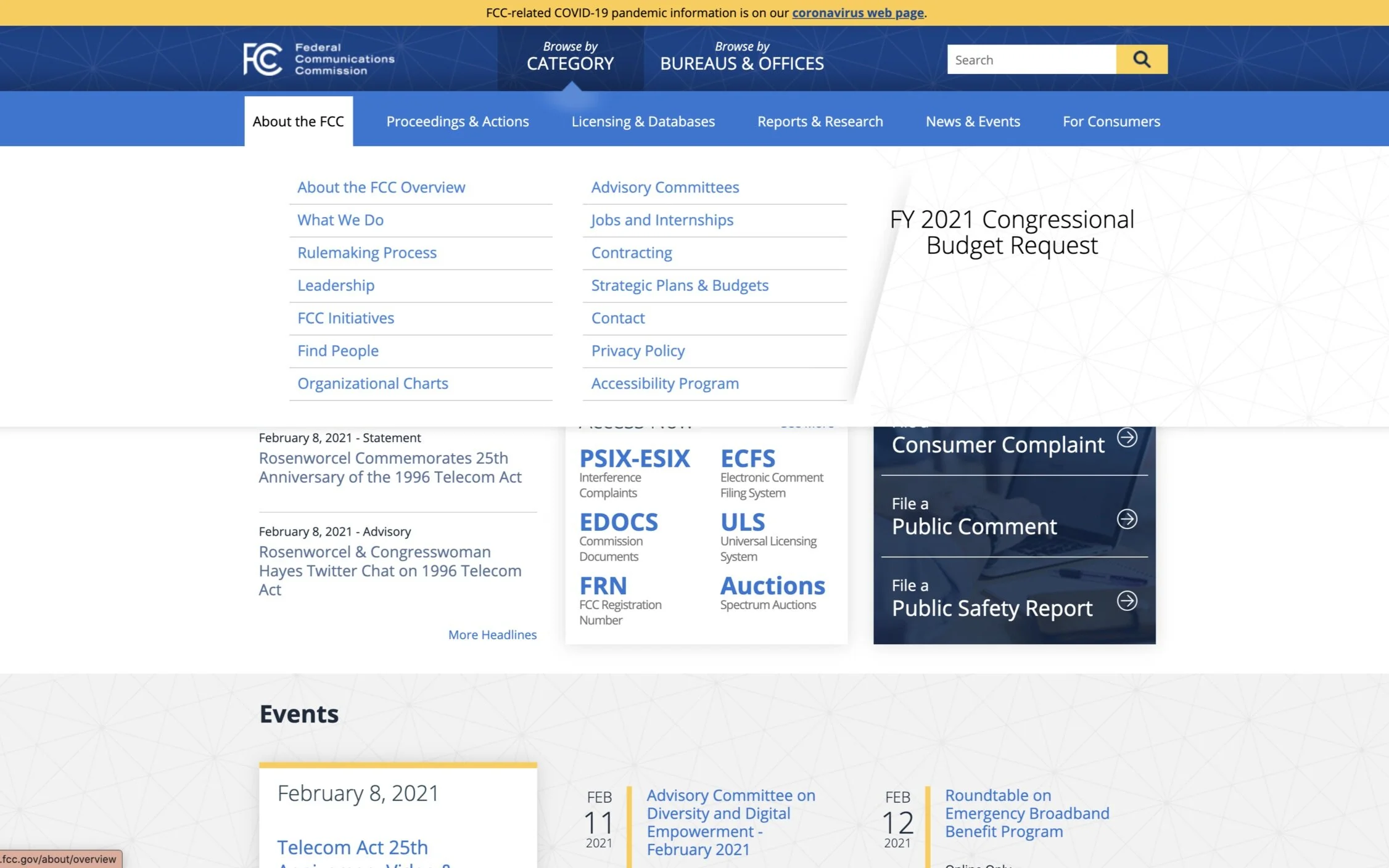 I expected the homepage to provide context as to what the core responsibilities and functions of the FCC were but it seemed that you already needed to have a pretty in depth understanding of what the FCC does to even understand the homepage.