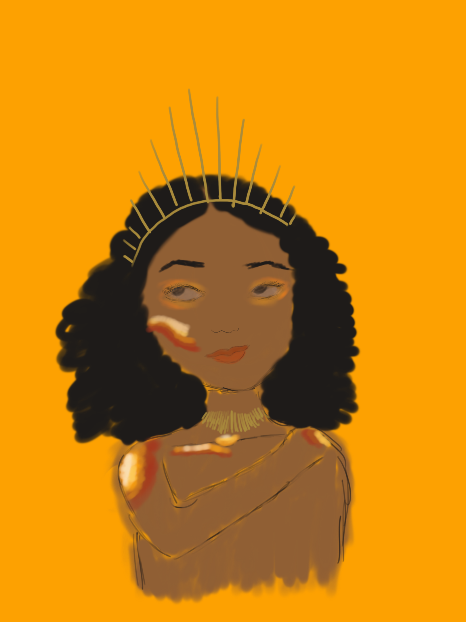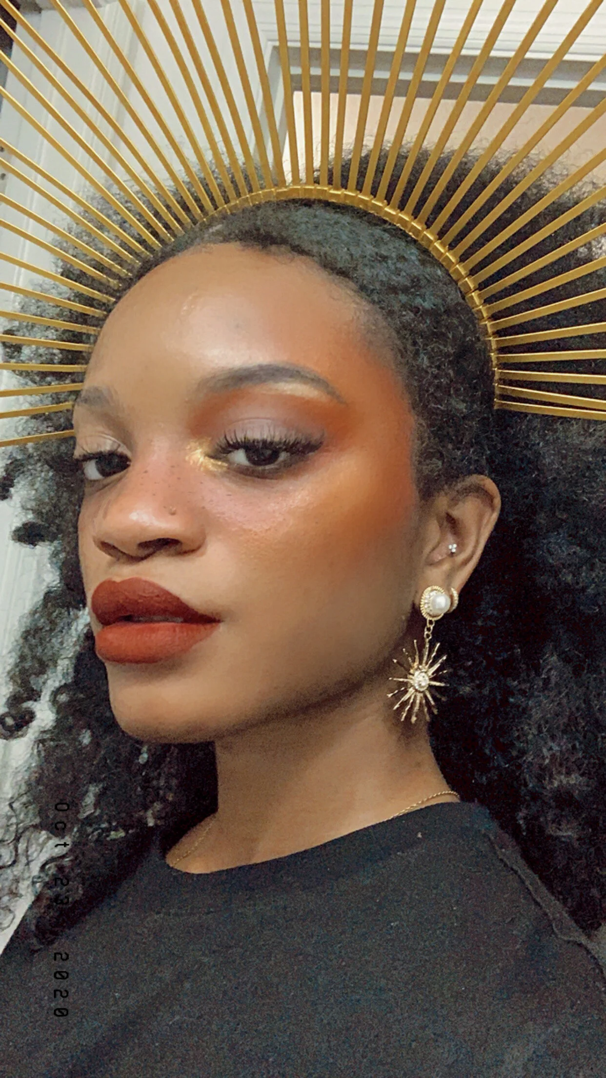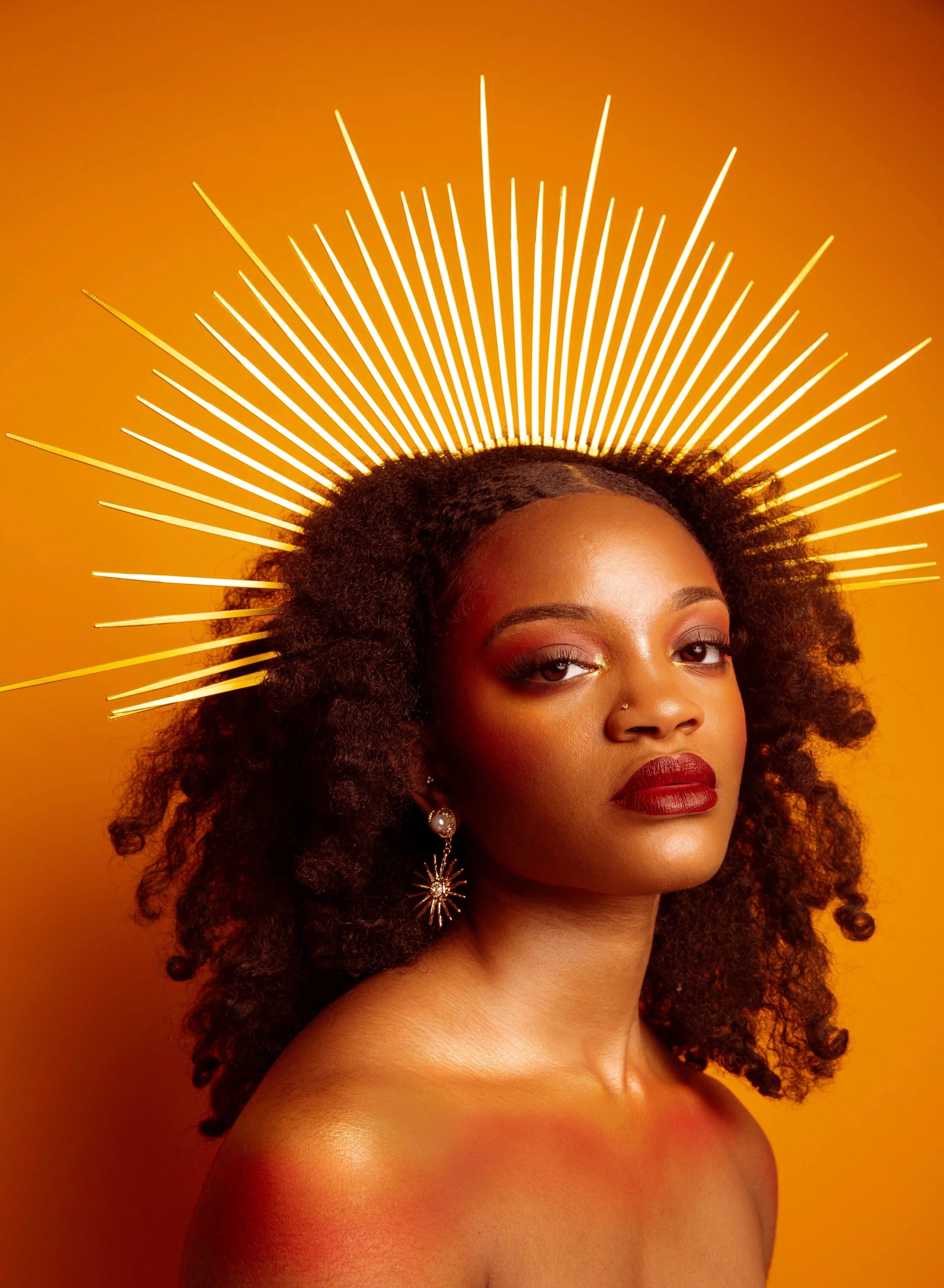 I knew that for each look, I wanted to embody the true essence of what both summer and winter have to offer: hot and cold, fire and ice. For my summer look, I couldn’t get the idea of orange and red glowing skin out of my mind. I knew I wanted to, essentially, be the sun. To be the sun, I needed big hair. I needed a warm and “wild” look but with a more relaxed, carefree pose.